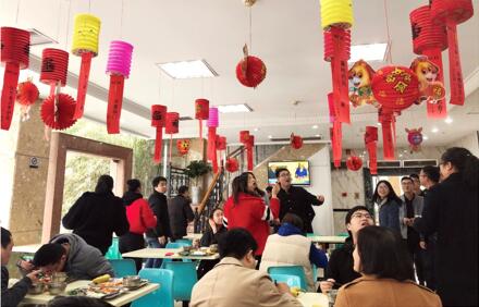 (通訊員 辦公室 吳雪飛)“姹紫嫣紅辭舊歲,山之一隅迎客來”(打公司一項目名)、“小火慢燉”(打公司一人名)、“一七對九走三五”(打一環(huán)保指標)……2018年3月2日,正值中國傳統(tǒng)元宵佳節(jié),集團公司食堂掛滿了一個個火紅的燈籠,燈籠下趣味十足的燈謎吸引著所有就餐人員的目光。大家邊吃湯圓邊猜燈謎,猜中的人歡呼雀躍,沒猜出來的人絞盡腦汁。這是東新高新集團舉辦“猜燈謎 慶元宵”活動現(xiàn)場的一景,員工食堂處處洋溢著溫馨歡樂的氛圍。